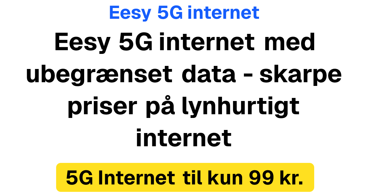 Kæmpe besparelse på Eesy 5G internet – kun 99 kr for ubegrænset data de første 2 måneder!